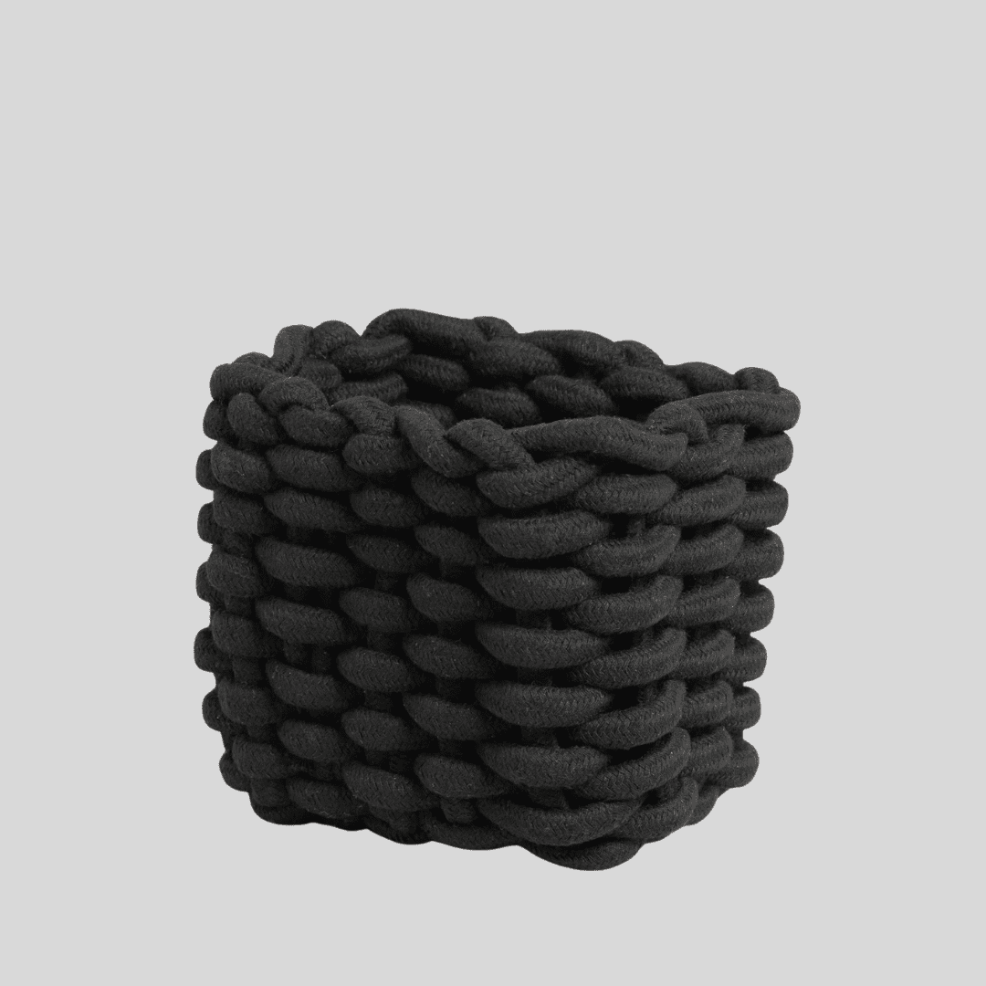 Añade un toque de calidez artesanal y funcionalidad sofisticada a cualquier espacio con el Cesto de algodón Tessuto negro de Blakmher. Con sus dimensiones de 17x17x12 cm, esta pieza destaca por su fascinante tejido a mano con cuerdas de algodón grueso, creando una textura visual y táctil que invita al contacto. Ideal para organizar pequeños objetos, joyas, mandos a distancia o simplemente como elemento decorativo.