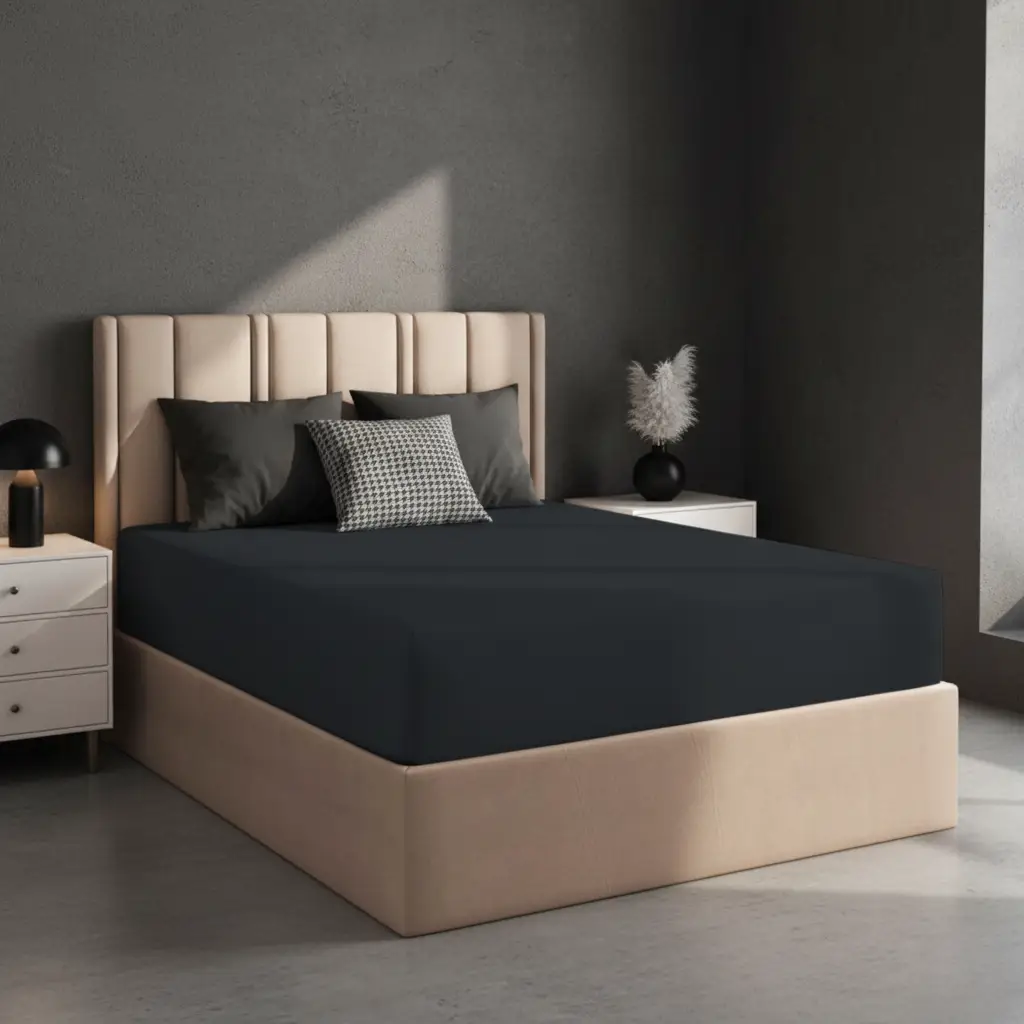 Eleva el estilo y el confort de tu cama con la Sábana Ajustable, la pieza fundamental para un dormitorio que irradia sofisticación minimalista. Diseñada para un ajuste impecable en tu colchón, su profundo color negro no solo aporta una base elegante y versátil a tu decoración, sino que su tejido de alta calidad promete una suavidad excepcional y durabilidad noche tras noche, garantizando un descanso placentero y un estilo inconfundible.